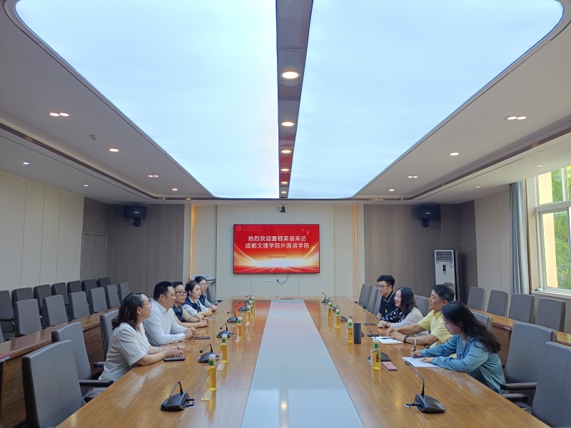 四川飞扬教育集团董事长蒋孝兵携品宣总监董建,人事主管胡洁及培训师薛雅方来访我校外国语学院,学生实习实践负责人潘巧及辅导员满达会晤了蒋董事长一行。