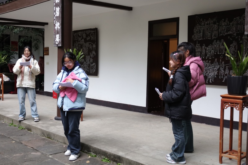 在此基础上,研学活动后续还规划了一系列多元化任务,包括研学报告撰写、VLOG/PLOG创作等,旨在培养学生的跨学科思维能力与团队合作精神。这些任务鼓励学生们在文化产业实践中亲身体验文学与社会的深刻联系,从而增强他们将理论知识应用于实践的能力,并塑造出具备创新思维和专业素养的复合型人才。研学成果将通过线上展览面向文法学院和全校师生进行展示共享,不仅有助于增强学生对巴蜀文化的认同与传承,也可为学院后续的课程建设提供丰富而宝贵的案例与素材。
