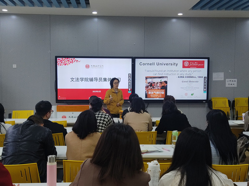 3月17日上午,文法学院在主教学楼C304教室开展以“扩宽教育视野,培育国际意识”为主题的辅导员专题学习活动。党总支书记陆明烨、党总支副书记兼学工办主任李明昌及全体辅导员参加活动。