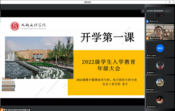 秋风送爽育桃李,丹桂飘香盼学子,信息工程学院700余名2022级新生于9月14日下午3时准时进入腾讯会议室开启仪式感满满的在线点名和“开学第一课”班会,开启学院线上入学教育。