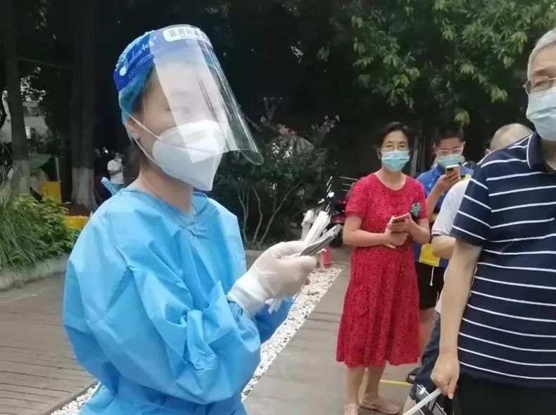 学生党员王家丽说,当时穿上防疫工作服的那一刻觉得特别神圣,自己成为了平时为大家检测核酸的检测人员。当时觉得很自豪很开心,但脸上被勒出了印子,脚也站得有些麻了;但相比其他的工作人员,他们更是辛苦。我们真的应该对他们说一声,你们辛苦了。