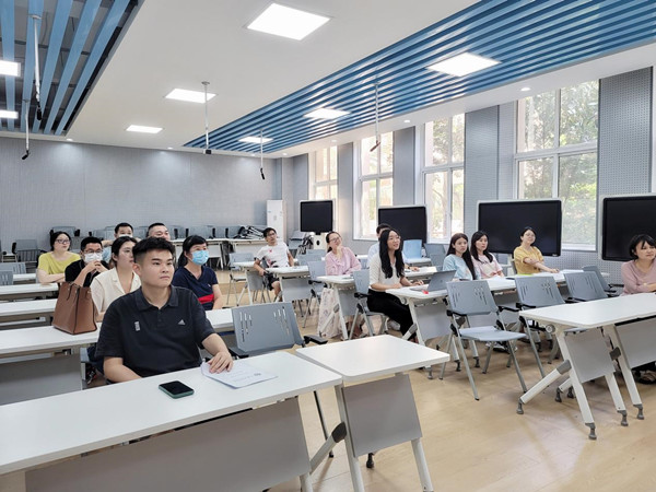 文秘与文化传播教研室主任陈诗向新教师们介绍了科研方面的情况,告知新教师学校在科研方面对老师给予了大力支持,刚入职的老师可尝试从校级课题项目做起,积累经验后争取申请更高层级的课题。