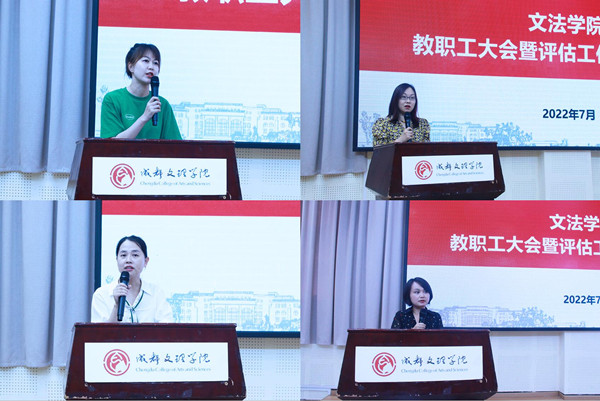 冉华庆就学院科研工作做总结。她提到科研作为学科建设的重要手段,各级教师要积极投身科研工作,推进教师综合素养的提升。曹佳丽传达学校教学督导会议精神,也就本学期学院教学情况做总结,提出教学工作存在问题,今后解决路径。