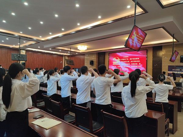 活动最后,全体党员重温入党誓词,仪式感十足。大家面向党旗,举起右拳,重温誓词,铭记当初入党时的初心,增强党性修养,表达做合格党员,为共产主义奋斗终生的坚定信仰,永葆共产党员的政治本色。(文法学院 供稿)