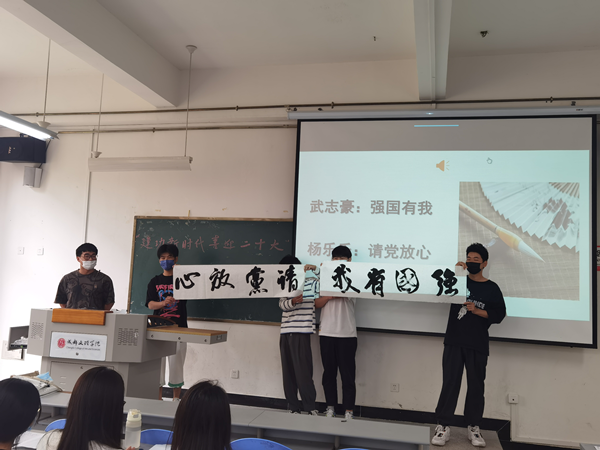 2021级计算机科学与技术4班同学、2020级英语108班用手势舞《国家》、原创歌舞等表达对当前中国已取得巨大的历史进步的喜悦之情。