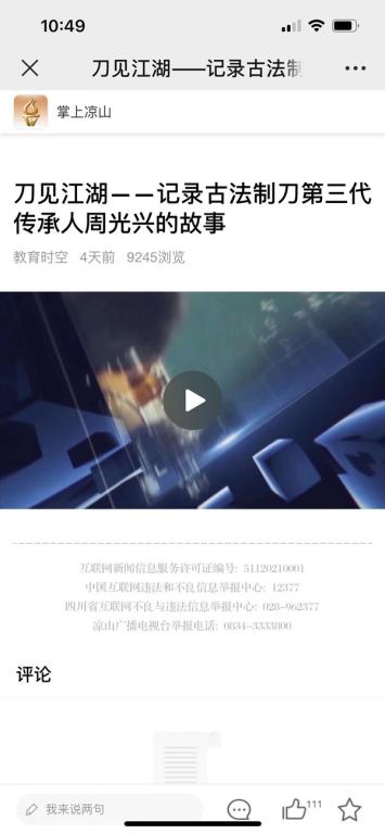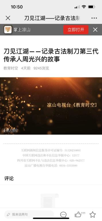 我校学生纪录片作品《刀剑江湖》在凉山彝族自治州电视台播出