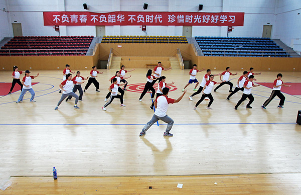 随后大学公共体育教研室全体教师移步至体育馆,由专职教师杨兵带领大家进行二十四式太极拳的学习。