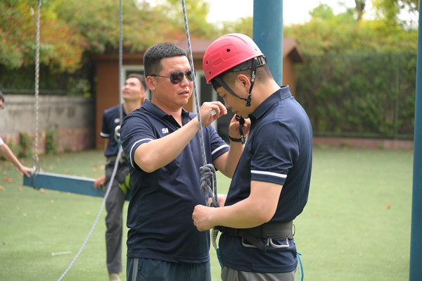 《素质拓展》课程上,郭峰运用了多元化教学方法与手段,以“二战”故事展开教学内容,将教学理念完美渗透到教学各个环节,课堂教学灵活、新颖,氛围轻松活跃,注重讲练结合,既有知识又有趣味,不仅提高了“学生”的学习兴趣,也感染了在座听课老师参与学习的积极性;在郭峰老师的组织下,体育专业教研室全体老师顺利完成了高空断桥、空中单杠以及翻越毕业墙等学习内容。学习过程中全体老师突破了自己的身体、心理极限并发扬了不畏艰险勇攀高峰的精神。课程结束,体育专业教研室全体老师对本次课程的学习情况进行了总结与分享,并对郭峰老师的课堂教学进行了点评,指出了优点和不足,绽放出了群体智慧的光芒。