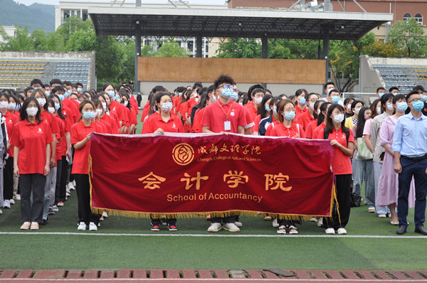 5月9日早上7时20分,会计学院与外国语学院在文理操场举行了升旗仪式。会计学院党总支书记吴操、外国语学院党总支副书记苏凌函及两个学院全体辅导员、学生干部、学生党员及2021级全体同学参与本次升旗仪式。