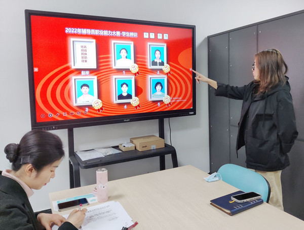 3月29日上午,学生辨识和主题宣讲环节在行政楼A501进行。学生辨识作为辅导员的基本功之一,考察辅导员对学生基本情况的了解和掌握程度。每位参赛辅导员对随机抽取的5名学生进行有效辨识,即准确说出学生姓名、班级、民族、寝室号及奖助学金情况五项信息。主题宣讲着重考察辅导员思想政治意识高度、拆解和宣讲方针政策的能力、思维逻辑能力等。每位参赛辅导员围绕既定的题目进行6分钟的脱稿宣讲,对学生进行思想教育和政治引领。