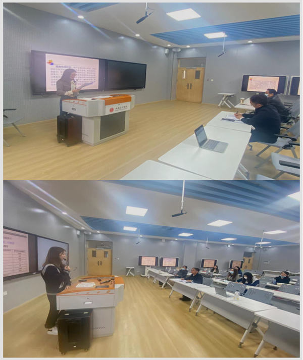 “说课”活动要求教师按照自选课程课内容在规定时间内进行讲解,综合考察教师的课堂礼仪、课程设计、课程思政、学生互动、板书、PPT设计等方面。活动中,各教研室老师语言清晰流畅,教态自然、富有激情,讲解深入浅出,课堂气氛活跃,教学效果良好。教研室其他教师认真聆听、做好记录。讲解结束后,全体教师进行了热烈地讨论,并针对语音语调、教学设计的规范性等方面都提出了中肯的建议。