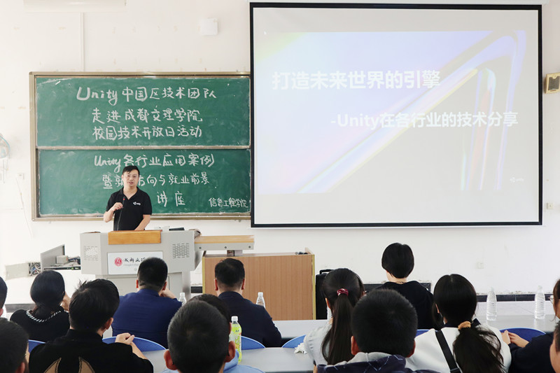 10月14日中午2时30分,信息工程学院邀请Unity中国区技术团队在主教学楼D214开展“Unity各行业应用案例暨就业方向及就业前景”主题讲座。党总支书记贾冲、学生工作办公室主任尹隆龙、学生第三党支部书记曾宇、2022届毕业班辅导员和300余名学生参加本次讲座。