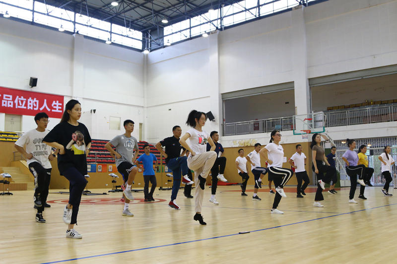 胡华副教授结合自己10多年的教学经历首先向全体教师分享了《健美操》课程的教学原则、方法、手段、考核方式等方面的经验,各教师积极参与了研讨,为健美操课程教学献言建策。集体研讨后,胡华副教授就本学期的教学内容进行了公开课教学,全体教师激情盎然,不畏炎热,伴随着欢快的音乐,踏着健康活动力的步伐,展现了健美操运动的魅力。