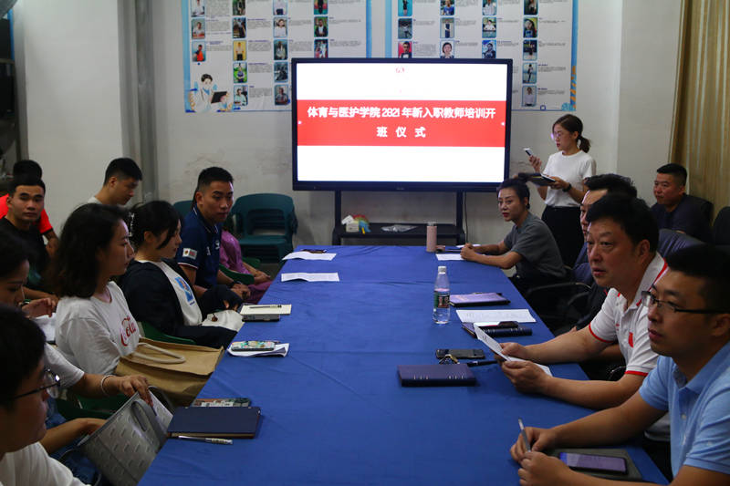 8月24日上午,体育与医护学院2021年新入职教师培训开班仪式在体育馆105会议室举行。