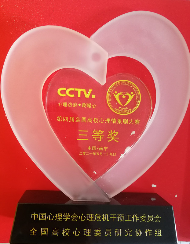 由我校大学生心理健康辅导中心教师周遥遥和传媒与演艺学院教师朱强荣共同指导的心理情景剧《角落里的光》,在全国320所高校的323件参赛作品中脱颖而出,荣获全国高校心理情景剧大赛三等奖。