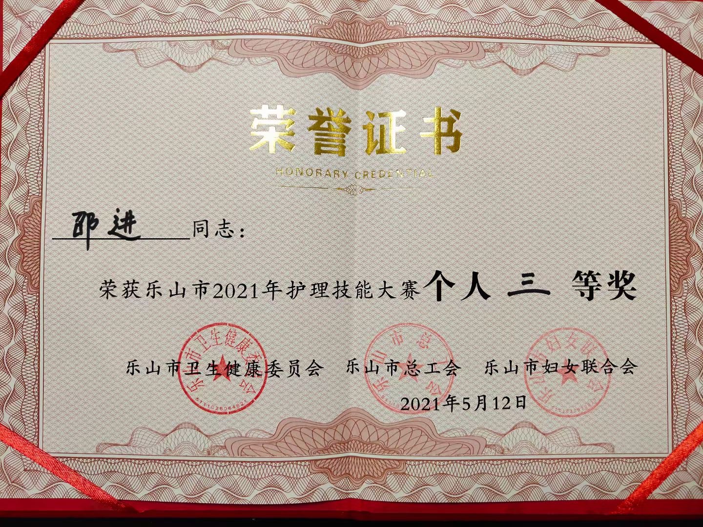 我校护理专业邵进荣获乐山市2021年护理技能大赛个人三等奖