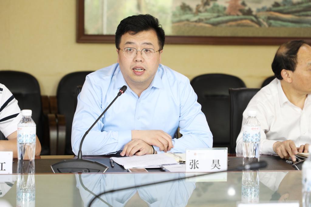 张昊致辞,对张子林院长一行的来访表示欢迎,并对学校的发展历程、教育教学、办学优势等情况作了简要介绍,高度评价了重庆城市科技学院的办学质量和育人水平,并期待两校在不同领域开展广泛而深入的交流与合作。