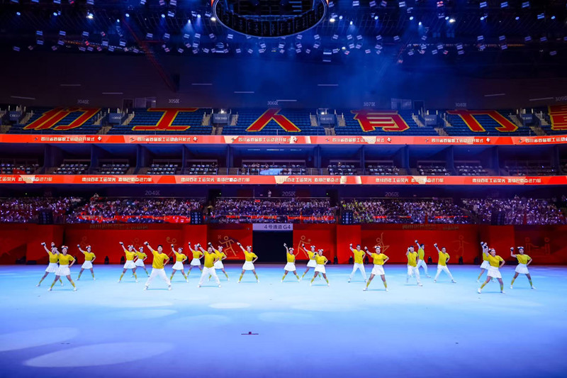 9月16日,四川省首届职工运动会在成都市高新区体育中心盛大开幕。本届运动会由四川省总工会与省体育局联合主办,以“中国梦·劳动美——赓续百年工运荣光 激扬巴蜀奋进力量”为主题,旨在全面展示全省职工昂扬奋进的精神风貌和体育风采。