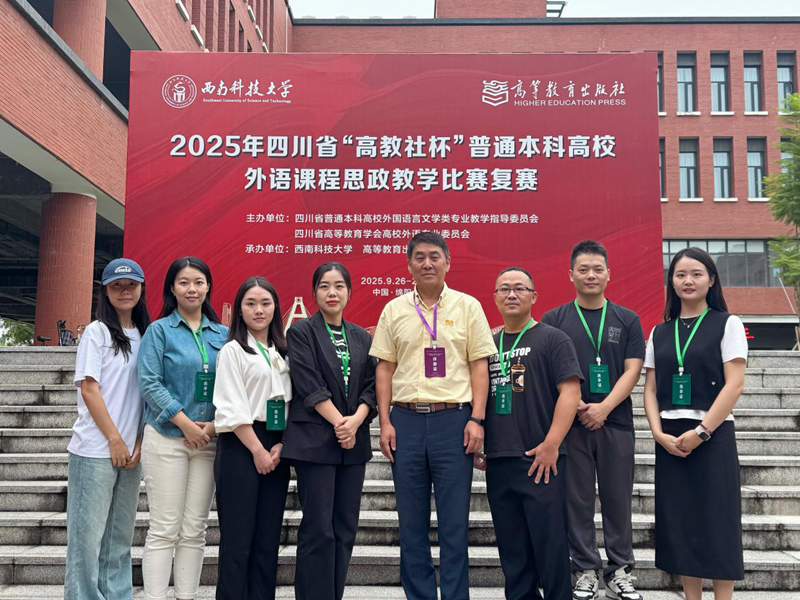 2025年四川省“高教社杯”普通本科高校外语课程思政教学比赛由四川省普通本科高校外国语言文学类专业教学指导委员会、四川省高等教育学会高校外语专业委员会联合主办,西南科技大学与高等教育出版社共同承办。作为外语教育领域的重要赛事,本次比赛吸引了四川省内各高校的多支优秀外语教师团队参赛,近70个参赛队的教学案例经初赛评审有40份作品进入省级复赛。 大赛以“推动外语教育与思政课程深度融合”为核心目标,强调语言教学需兼顾知识传授与价值引领,着力培养学生的思想政治素质与跨文化交际能力。外国语学院获奖团队紧扣赛事主题,将思政元素巧妙融入外语教学环节,通过精心设计的教学方案与生动鲜活的教学实践,实现了“语言能力培养”与“思政素养塑造”的同频共振,得到评委专家的高度认可,也充分彰显了外国语学院在外语课程思政教学领域的深厚积淀与卓越实力。