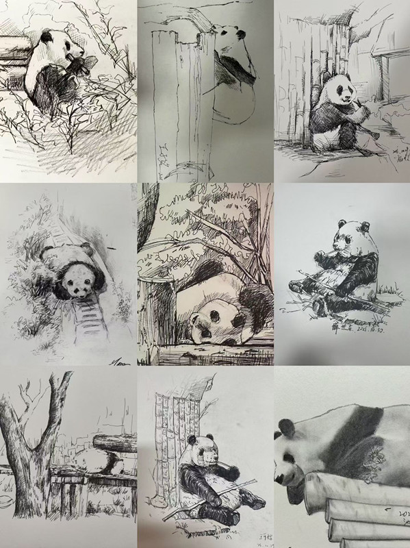 随后,同学们将创意融入作品,通过速写、摄影、短视频、IP设计草图等多种形式,完成了以“熊猫+数字艺术”为主题的创意成果。在最后的展示环节中,同学们轮流上台阐述设计理念,专业教师现场点评,气氛热烈。