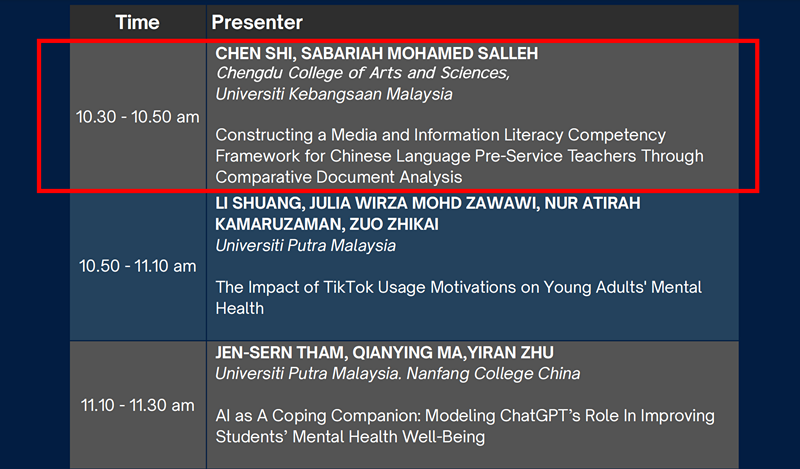此次参会不仅体现了成都文理学院教师在媒介与教育融合研究领域的学术水平与国际视野,也为学院在数字教育与跨文化传播领域的进一步发展搭建了国际合作平台。(文法学院 供稿)