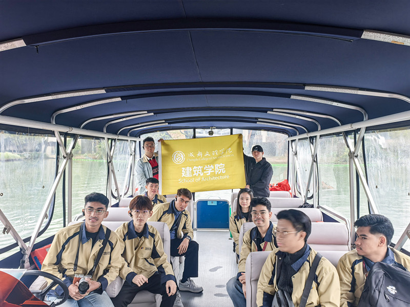 参访过程中,师生们乘船畅游麓湖,沉浸式感受湖光山色与建筑艺术、社区氛围的完美融合。中外学生结伴同行,围绕专业知识应用、行业发展前景、不同地域文化特色等话题展开了热烈而深入的交流,在轻松愉悦的氛围中有效拉近了彼此距离,深厚了跨文化友谊。