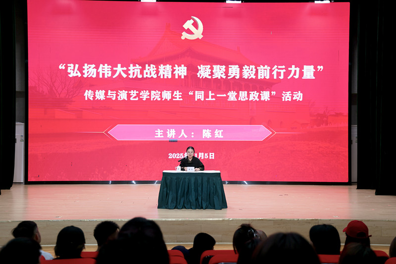 此次思政课,陈红女士通过珍贵的历史影像、生动的英雄事迹,带领大家重温了抗日战争时期中国人民不畏强暴、浴血奋战的壮阔历程,让师生们进一步理解了抗战精神的时代价值,增强了民族认同感和历史责任感。希望师生们在未来能将此次活动中激发出的爱国热情转化为专业学习的动力,用声音和影像讲好中国故事,以实际行动践行“强国有我”的青春誓言,为实现中华民族的伟大复兴贡献青春力量。(传媒与演艺学院 供稿)