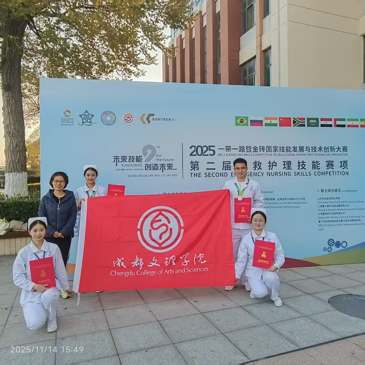 近日,2025一带一路暨金砖国家技能发展与技术创新大赛——第二届急救护理技能专项赛在山东威海落下帷幕。在超现代大健康产业学院的大力支持下,我校体育与大健康学院护理系选派两支代表队参赛,与来自全国各地的优秀学子同台竞技,经过激烈角逐,最终凭借扎实的专业技能和出色的临场表现,本科组荣获全国二等奖,专科组荣获全国优秀奖,成都文理学院获最佳组织奖。