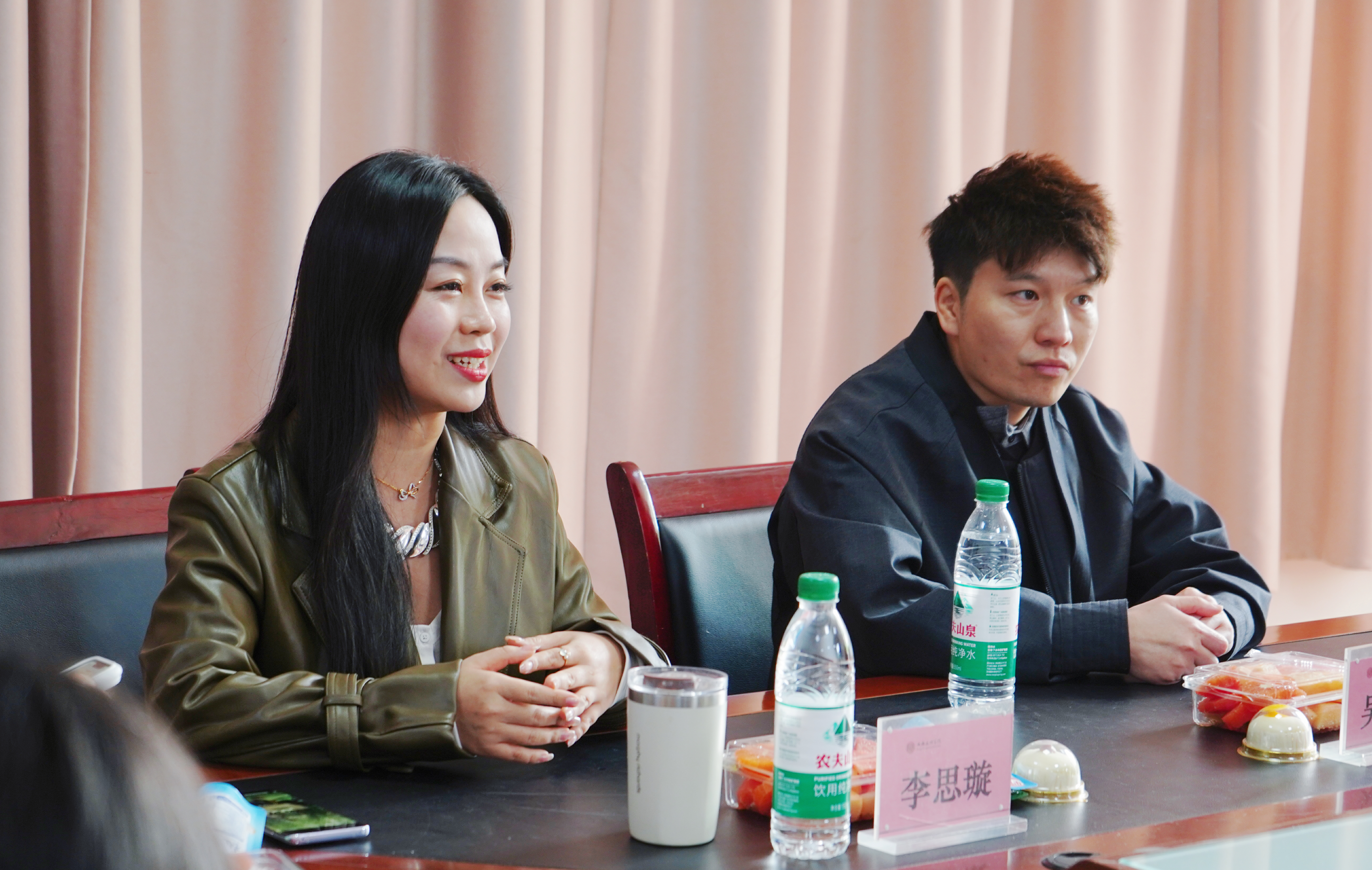 分享会上,两位校友结合自身经历,讲述了从校园学习到职业发展、艺术探索与创业实践的过程,回顾了求学时期的经历与步入社会后的挑战与收获。在随后的互动环节,在场学生就专业学习、职业规划、创业准备、艺术与商业平衡等问题与校友进行了交流。