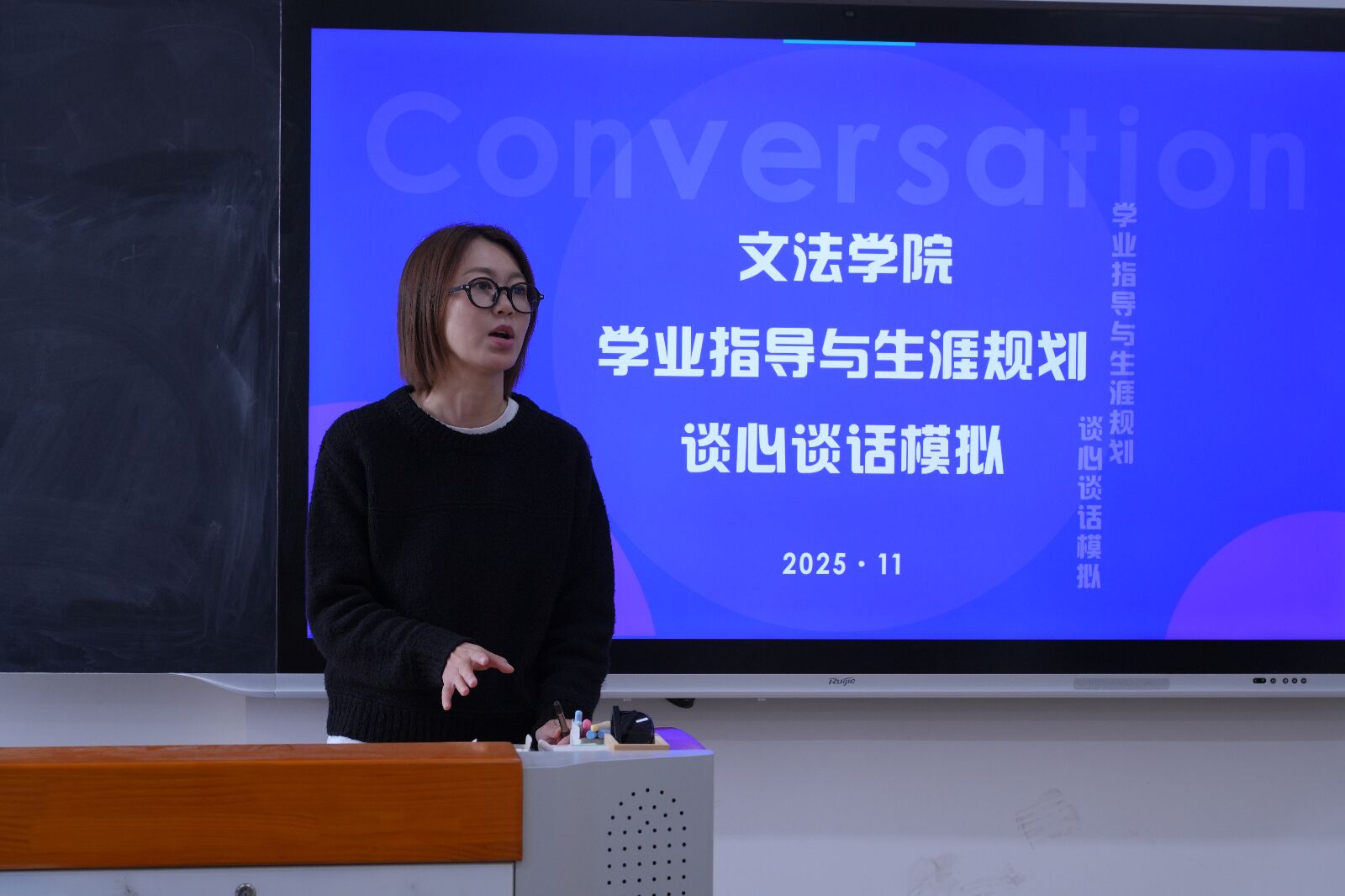 此次模拟活动聚焦学生普遍关心的升学规划、学业困惑、就业选择等主题,通过模拟谈话的形式,帮助辅导员熟练掌握谈心谈话的核心流程与沟通技巧,进一步提升在学生成长过程中的引导与支持能力。