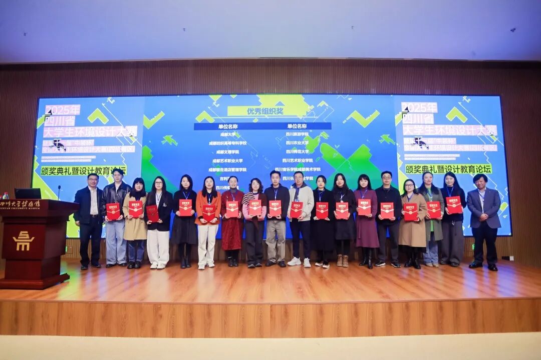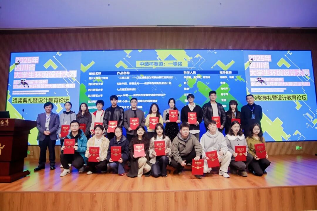 11月8日,由四川省教育厅主办,四川大学承办,四川大学教务处、图书馆、博物馆、艺术学院共同执行承办的2025年四川省大学生环境设计大赛暨第十一届“中装杯”全国大学生环境设计大赛(四川赛区)颁奖典礼暨设计教育论坛在四川大学博物馆隆重举行。大赛得到了中国建筑装饰协会、四川省高等教育学会、四川省普通本科高校设计类专业教学指导委员会、四川美术家协会等单位的大力支持,展览吸引了全省众多高校师生参与,竞争激烈。成都文理学院艺术学院党委书记、副院长黄鑫、院长助理、环境设计系主任向斌、教师郝薇及学生谭芮、胡娅玲、刘青娟、何骏等代表参会。