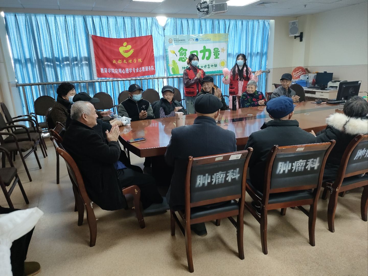 11月19日,“银龄分享·情绪疗愈”心理陪伴活动金堂县第一人民医院肿瘤科顺利开展。本次活动由金堂县第一人民医院主办,成都文理学院教育学院应用心理学专业志愿分队承办,旨在为医疗照护中的心理健康维度添砖加瓦,帮助肿瘤患者释放负面情绪、增强治疗信心。