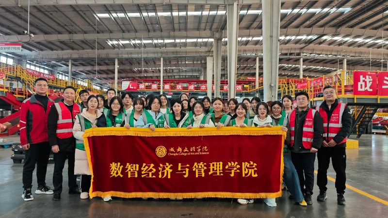 11月26日,在成都文理学院数字经济产业学院的支持下,数智经济与管理学院数据分析与智能管理系主任石玉峰、副主任张晶宇、专职教师尹传龙组织2025级大数据管理与应用、工商管理专业部分学生前往世界500强企业——京东集团在青白江祥福的成都枢纽,开展了一场内容丰富、理论与实践紧密结合的专业认知实践活动。