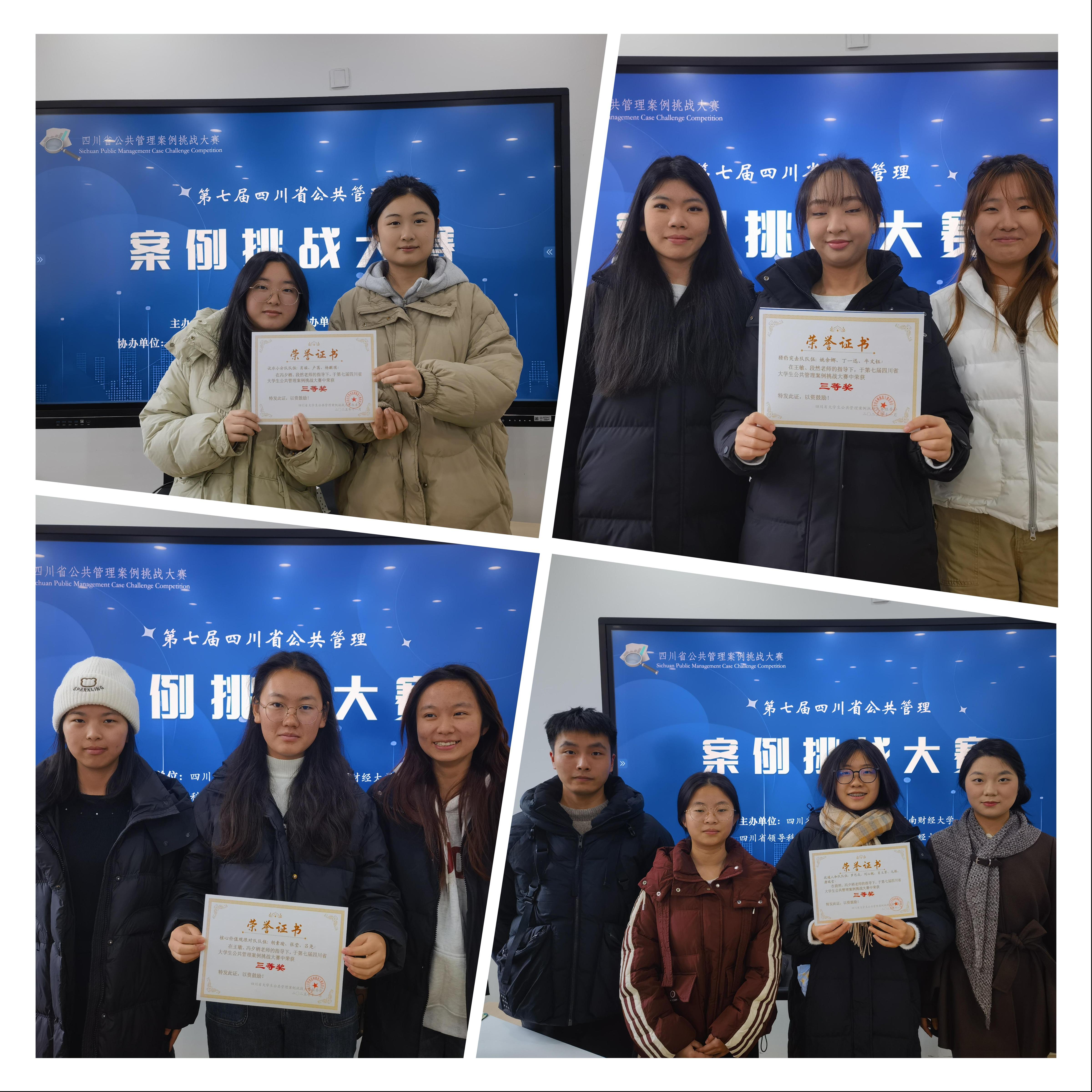近日,第七届四川省大学生公共管理案例挑战大赛落下帷幕。本次大赛由四川省教育厅主办、西南财经大学承办,西南财经大学公共管理学院负责具体执行,吸引了来自全国 43 所高校的 166 支队伍踊跃报名参赛,赛事竞争异常激烈。我校学子在本次大赛中表现亮眼,共计 8 支队伍斩获佳绩,其中二等奖 2 项、三等奖 6 项,实现了参赛成绩的可喜突破。