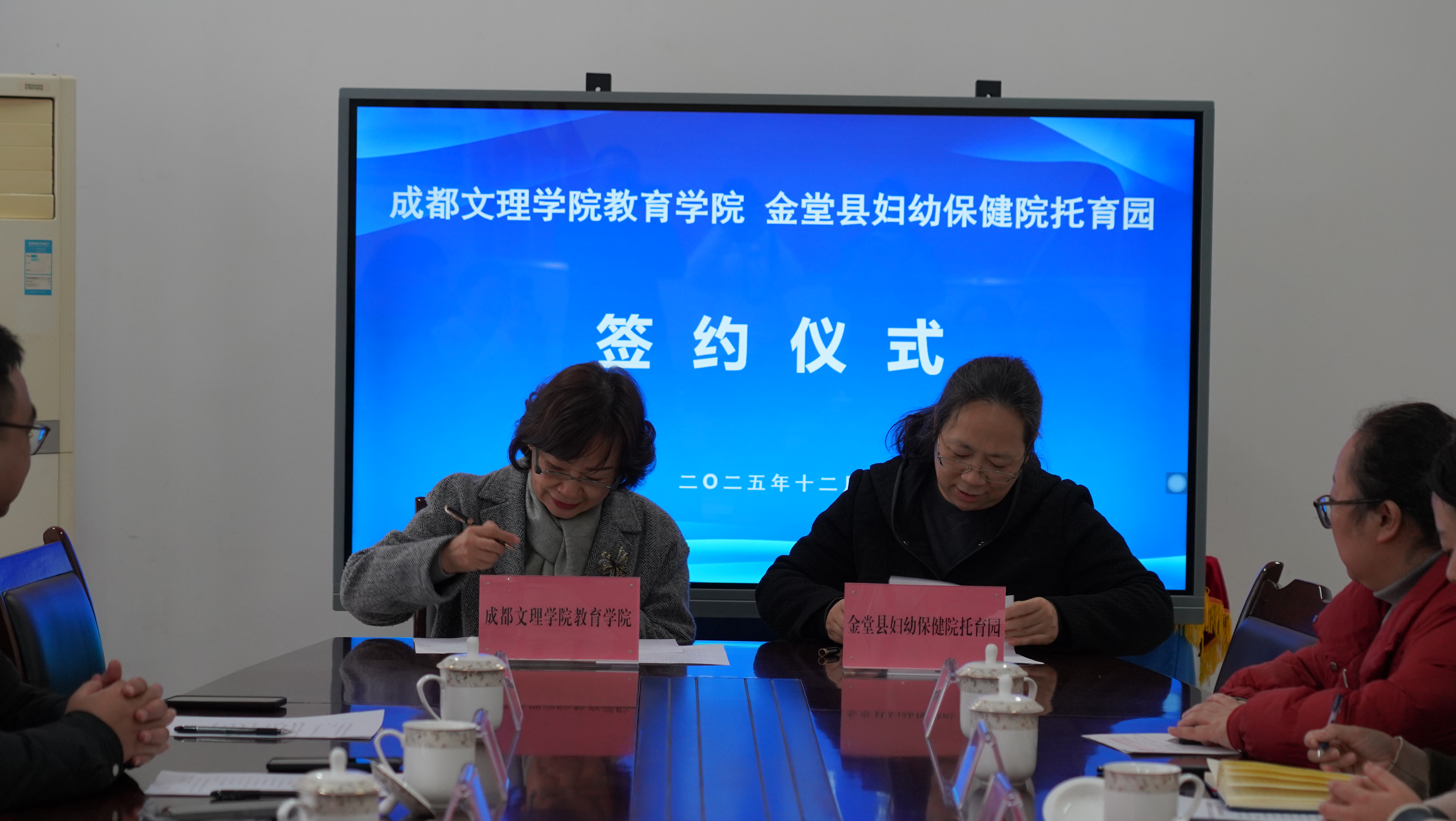 为积极响应国家托育服务体系高质量发展战略,深化“院园协同、医教融合”育人机制,进一步拓宽学生实习实践与高质量就业平台,12月3日,成都文理学院教育学院与金堂妇幼保健院托育园成功举行“实践教学暨就业基地”签约授牌仪式。此次活动标志着双方在早期教育人才培养、科研合作与社会服务等领域正式开启制度化、常态化合作新阶段。