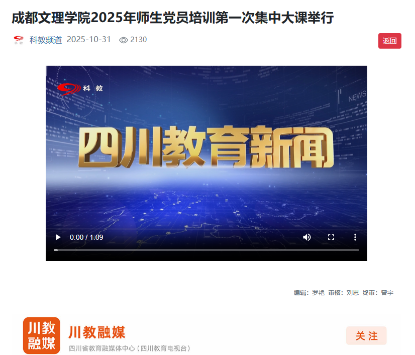 【四川电视台科教频道】成都文理学院2025年师生党员培训第一次集中大课...