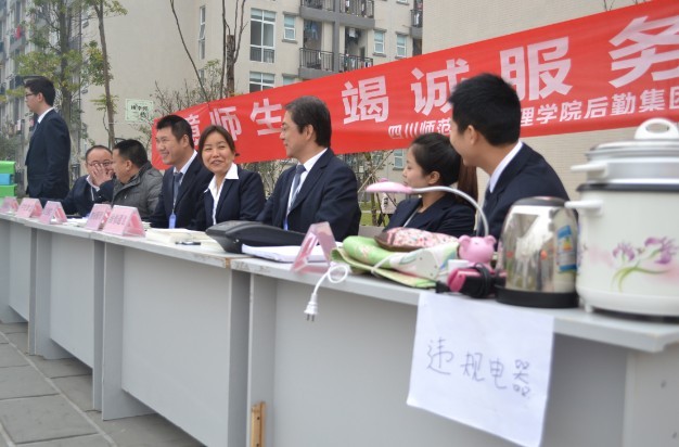 12月6日,我院后勤集团开展了出门服务活动。后勤集团本着“满意师生,竭诚服务”的宗旨,分别设立了“投诉意见”,“学生食堂”,“安全消防”,“物业管理”,“维修通道”,“学生公寓”,“违规电器”等7个窗口全天候为师生们服务,为师生们解答各类生活问题。