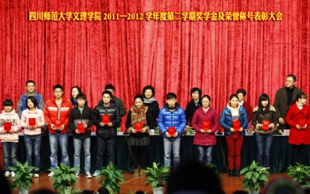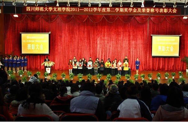 12月6日下午2点30分,我院2011-2012学年度第二学期奖学金及荣誉称号表彰大会在二校区文理大讲堂隆重举行。