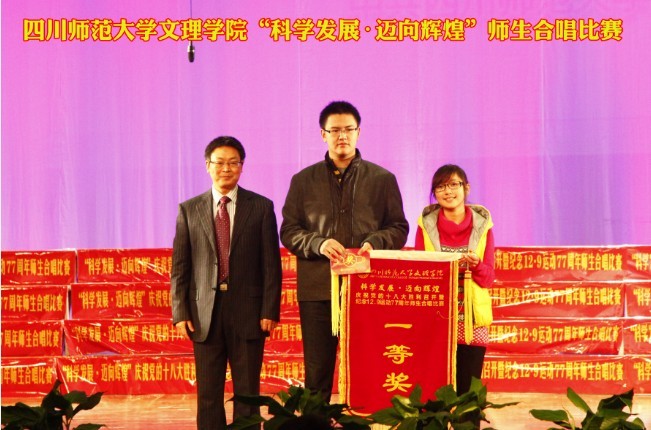 12月6日晚7点,我院在星空剧场隆重举行以“科学发展•迈向辉煌――庆祝党的十八大胜利召开暨纪念12•9运动77周年”为主题的合唱比赛。学院院长唐小林、党委书记高华锦、副院长李爱冬、涂开益、副书记邹昌淑以及各院系负责人、师生代表参加活动。信息技术学院凭借其精彩的表演,以一曲《国家》荣获一等奖。