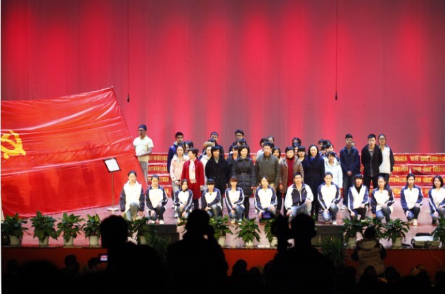 比赛间歇,学院还举行了庄严的新党员的宣誓仪式。(记者:刘安妮)