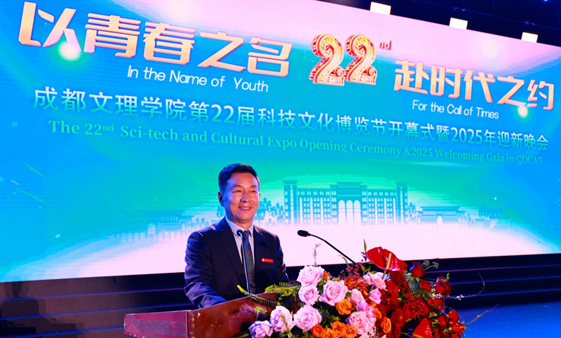 成都文理学院董事长刘学民致辞并宣布第二十二届科技文化博览节开幕。