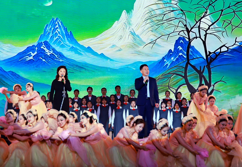 活动进入尾声,全体演员、师生共同唱响《歌唱祖国》,歌声饱含深情,唱不尽心中对祖国的祝福。