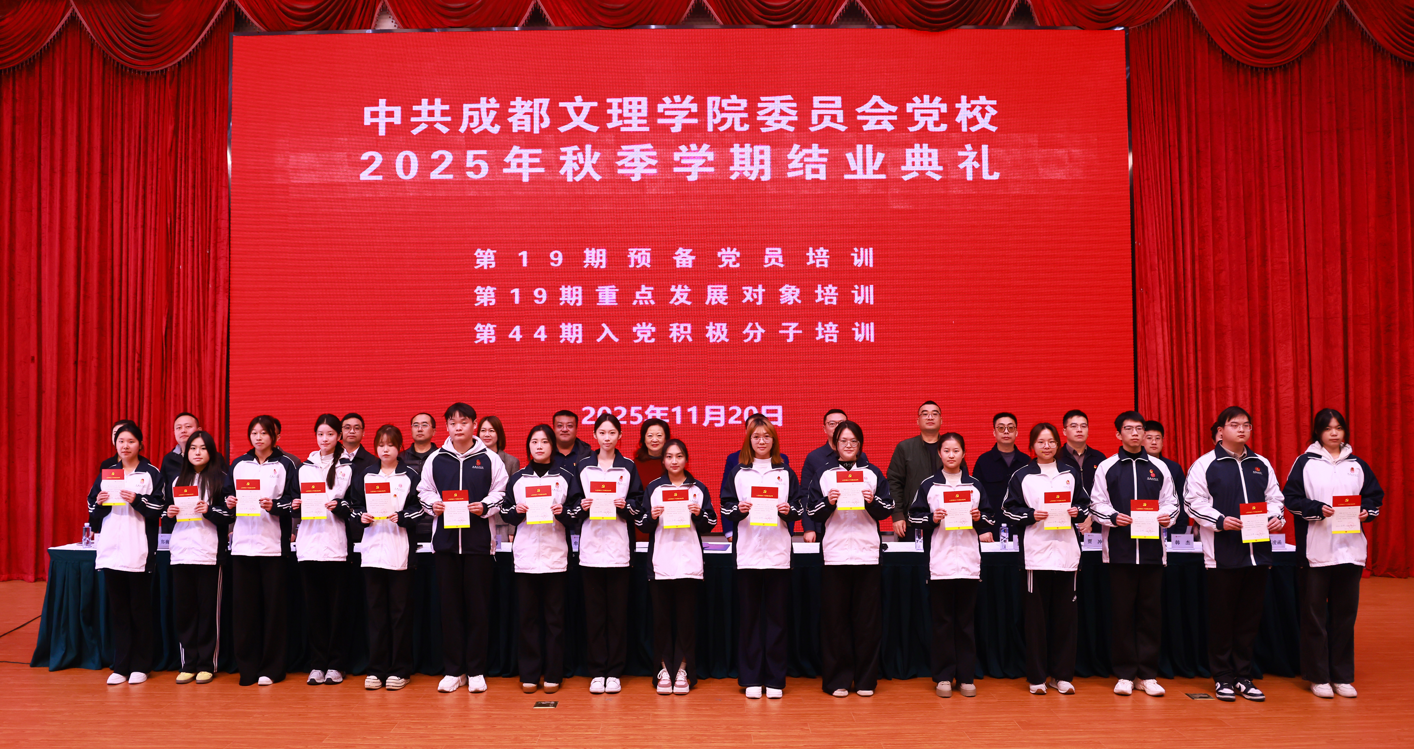从9月底以来,按照学校党委工作总体安排,学校党校组织实施2025年秋季学期入党积极分子、重点发展对象、预备党员(新党员)3个主体班次的培训工作,共有2423名学员(其中教职工学员11名)参加培训,经过两个多月紧张有序的培训,基本完成预期任务、达到预期目标,有2394名学员取得结业资格。