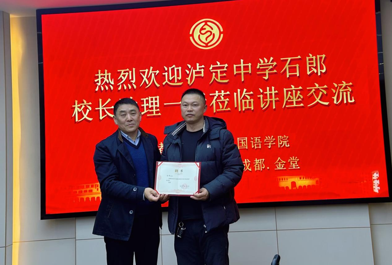 讲座最后,王维民院长作总结发言。他高度评价了石郎老师提出的“教学创习”理念,认为它精准呼应了师范认证中对学生英语能力的进阶式要求,能有效激发师范生的内生动力与创新潜能。他强调,这些源于中学教育一线的宝贵思考,为我院教师革新教学理念、优化培养模式提供了重要启迪。最后,王维民院长代表学院向石郎老师颁发聘书,聘请其担任外国语学院校外学业导师。