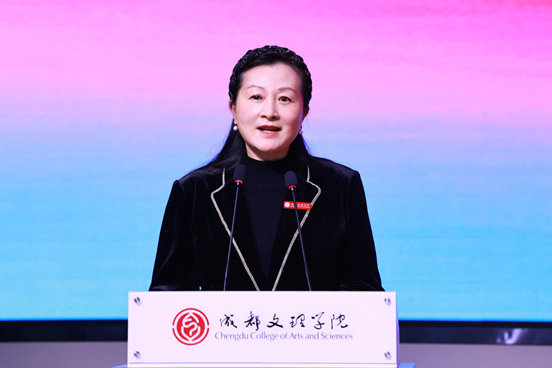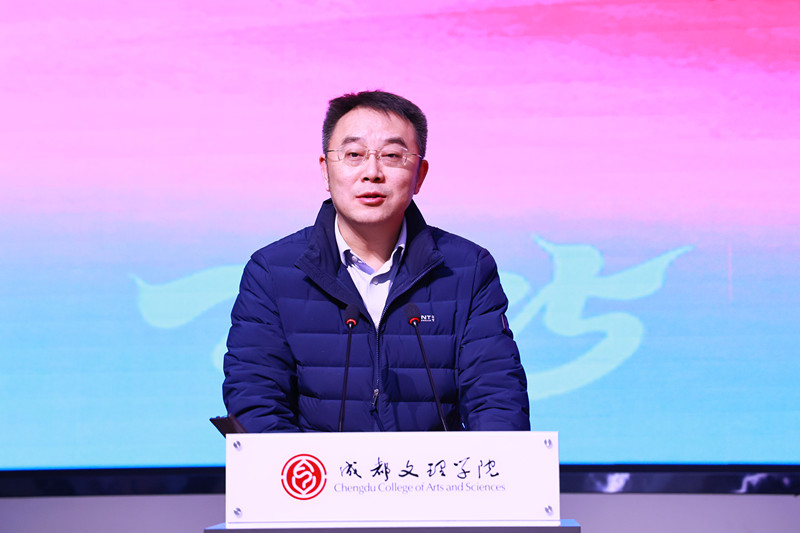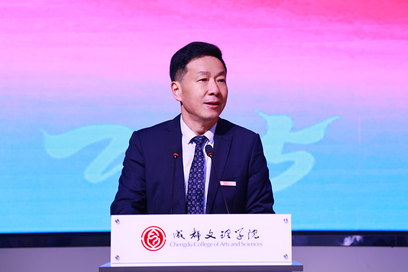 成都文理学院董事长刘学民致辞。他表示,自建校以来,学校始终坚持以“服务国家教育战略、助力地方教育发展”为己任,始终坚守“为党育人、为国育才”的初心,紧扣国家战略和四川经济社会高质量发展需求,以服务成渝地区双城经济圈建设、助力教育强省建设作为办学核心导向,学校坚持“多元选拔与协同育人”理念,多维度开展探索实践。一是聚焦人才培养与课程建设,优化专业布局,构建“厚基础、宽口径、重交叉、强实践”课程体系,强化通识教育与专业教育融合,为学生成长提供阶梯式发展通道。二是优化招生与教育评价工作机制,注重考查学生学科特长、创新潜质与生涯规划能力,紧扣时代发展需要,以培育学生核心竞争力为核心关键,推动评价方式从“分数导向”向“能力与素养导向”转变。三是强化资源协同与平台共建,开展师资互聘、教研互通、课程共建等深度合作,建立学生成长档案和数据共享机制,积极推动与中学共建生涯规划指导中心、学术体验基地、创新实验室等平台,推动形成“资源共享、责任共担、人才共育”的育人格局。他表示,期待以此次会议为契机,全省教育战线的合作关系更为紧密,教育衔接赋能机制更趋完善,培养新时代高素质人才、推动四川教育高质量发展、助力成渝地区双城经济圈建设的动能更加澎湃。