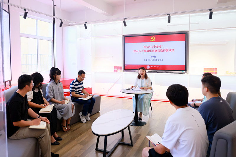 6月30日下午,学校党委书记、政府督导专员高华锦以党的作风建设为主题,在所在党支部讲专题党课。她强调,要深入学习贯彻习近平总书记关于加强党的作风建设的重要论述,牢记“三个务必”,锤炼党性修养,锲而不舍推动作风建设取得新成效。学校党委副书记、工会主席卢元勇主持。